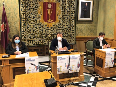 El alcalde de Cuenca, Darío Dolz, y el concejal de Cultura, Miguel Ángel Valero, han presentado hoy el programa de actividades de La Noche del Patrimonio que se celebrará el sábado 18 de septiembre simultáneamente en las 15 Ciudades Patrimonio de la Humanidad de España; un acto en el que han estado acompañados por la diputada provincial de Cultura, Fátima García; y el representante del Museo de Semana Santa, Álvaro Martínez.