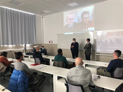 El alcalde, Darío Dolz, y el vicerrector del Campus de Cuenca de la Universidad de Castilla-La Mancha, César Sánchez Meléndez, han visitado a los alumnos durante este primer día de clases, poniendo en valor este laboratorio urbano que fomenta el emprendimiento en el sector de la bioeconomía forestal.