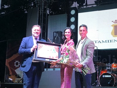 Tras el pregón, el alcalde Darío Dolz ha entregado a Cristina Esteban una placa conmemorativa realizada por el ceramista Luis Castillo.